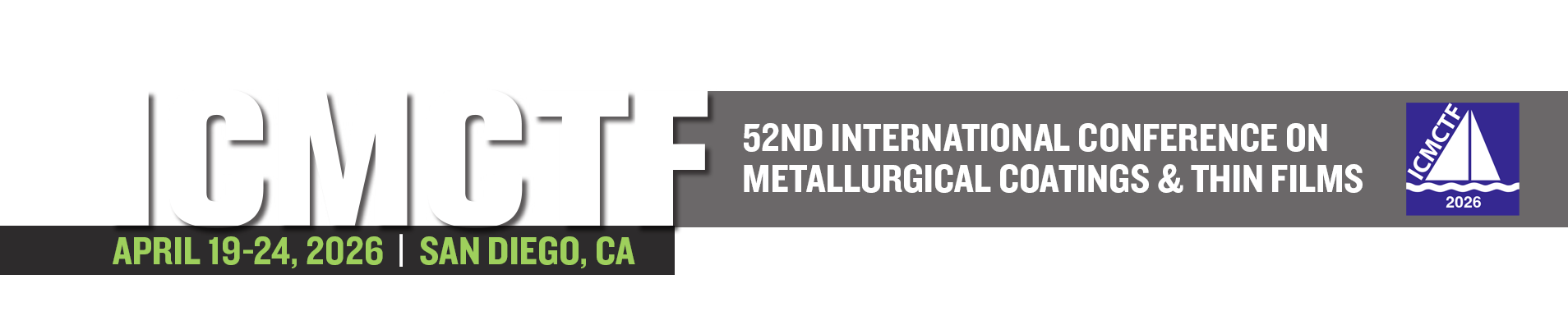 The 52nd International Conference on Metallurgical Coatings and Thin Films (ICMCTF 2026) will be held at the Town & Country Resort, San Diego, California, USA, from April 19-24, 2026. ICMCTF is the premier international conference in the field of thin film deposition, characterization, and advanced surface engineering, promoting a global exchange of ideas and information among scientists, technologists, and manufacturers. The ICMCTF 2026 technical sessions will feature an overarching theme that emphasizes materials, surface engineering, processes, and applications relevant to the development of future materials, and will include a Topical Symposium focused on sustainability. The Conference includes more than 90 high-profile invited speakers, in over 50 sessions, across technical symposia, plenary and keynote lectures, short courses, an awards program, and daily social networking events.