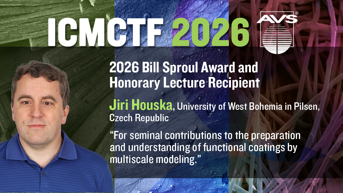 The Bill Sproul Award and Honorary ICMCTF lectureship is to recognize the achievements of a mid-career researcher who has made outstanding scientific and/or technological contributions in areas of interest to the Advanced Surface Engineering Division (ASED) of the AVS, with an emphasis in the fields of surface engineering, thin films, and related topics.