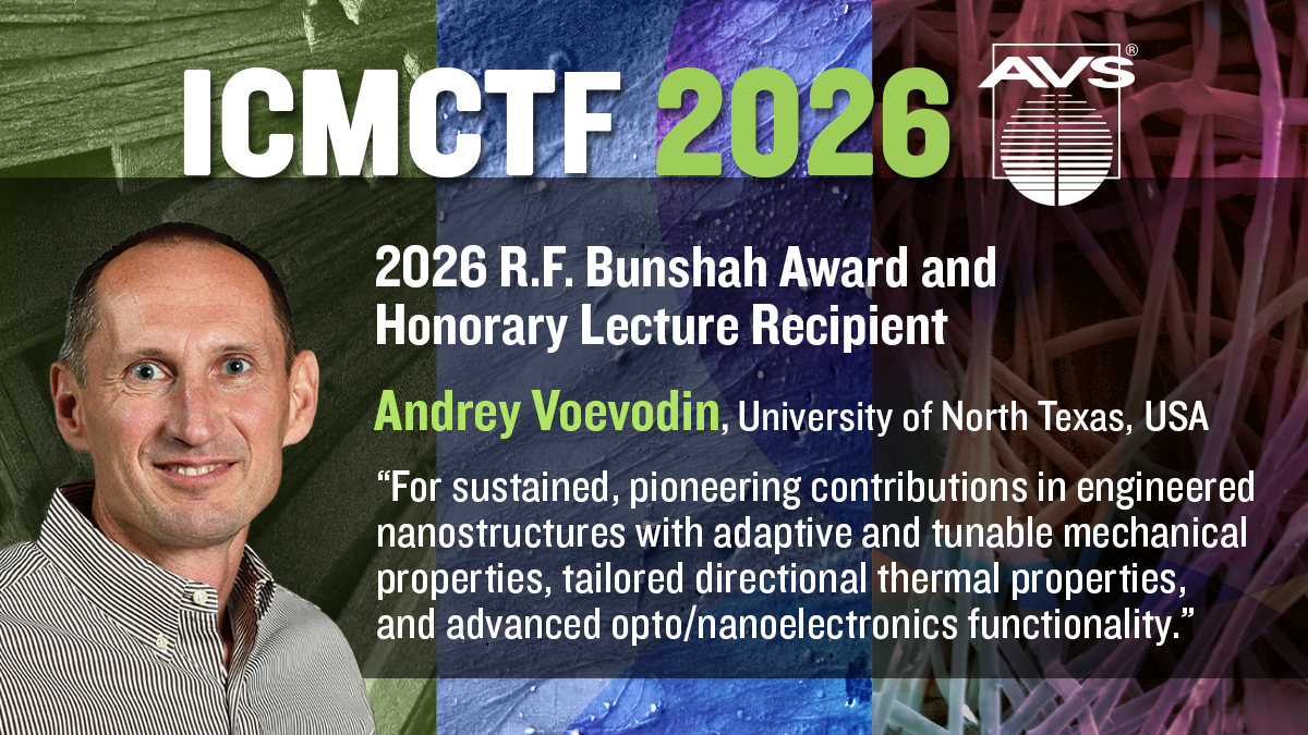 Andrey holds multiple awards for research excellence and is a Fellow of the American Vacuum Society and a Fellow-Mentor of the Society of Vacuum Coaters. He has served the ASED/AVS community in various roles, including ICMCTF Conference General and Program Chair, Proceedings Editor, Treasurer, and ASED Chair. Andrey has advised over 40 graduate students and 35 post-doctoral scientists, many of whom are now active members in the ICMCTF/AVS community.